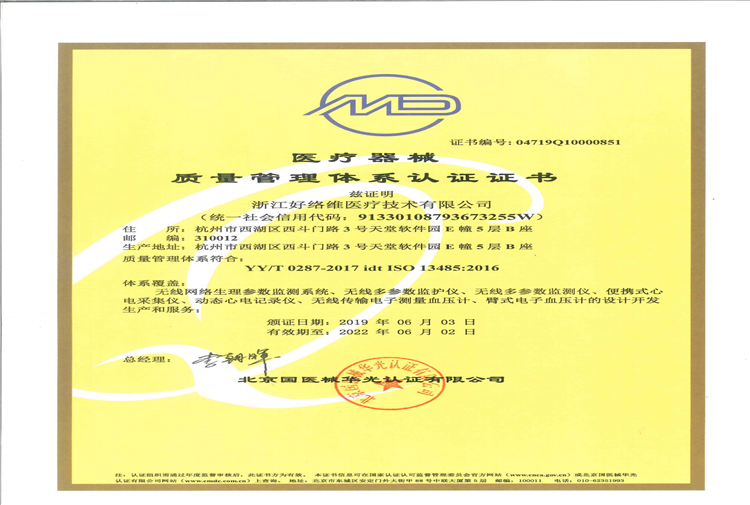 醫(yī)療器械質(zhì)量管理體系認證證書ISO13485:2016