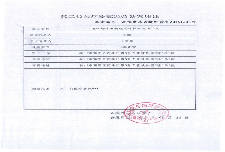 二類醫(yī)療器械經(jīng)營備案憑證